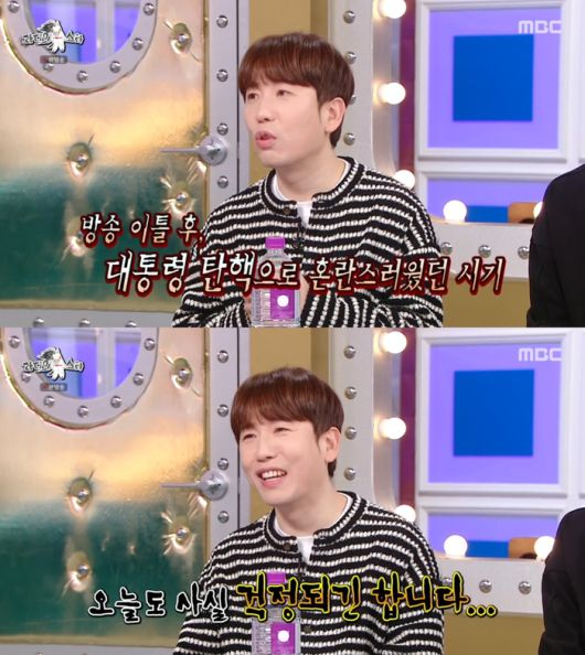 김구라가 “정국을 탓하는 거냐”고 묻자 남창희는 “아무튼 그랬다. 이번에도 사실 걱정되긴 한다. 잘 풀려나가길 바란다”고 말했다. 이에 김구라는 “어수선한 시국에 연예인들이 웃음을 줘야 한다”고 했다.