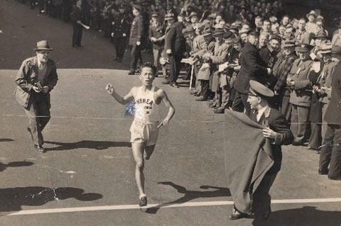 보스턴 마라톤 대회 우승 당시의 서윤복 선수. /조선일보DB |