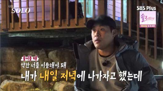 영숙과 영철의 데이트를 부추긴 현숙이 데이트 시간까지 양보하고 싶지 않다며 영철과 저녁 데이트를 고집했다. /사진=SBSPlus·ENA '나는 솔로' 캡처 |