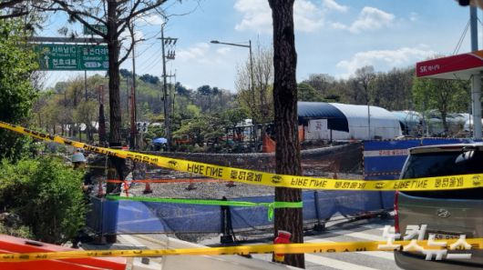 강동구 명일동 싱크홀 현장 도로 복구가 며칠 앞으로 다가온 15일, 강동구 대명초등학교 사거리는 복구 작업이 한창이었다. 초등학생들의 시끌벅적한 웃음소리와 발소리가 들리지만 이는 복구 현장에서 묻혔다. 공사장에서는 크레인이 사람 키보다 높은 흙더미를 연신 나르고 있었고, 근처 주유소에는 '땅 꺼짐으로 진입을 통제합니다. 우회하세요'라는 안내문이 붙어 있었다. 보행자는 좀처럼 찾아볼 수 없었다. 차가 다니지 않는 탓에 가끔 보이는 시민들은 횡단보도 빨간불에도 길을 건넜다.