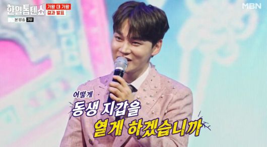 ‘현역가왕2’ 우승자로 상금 1억원을 산불 피해를 위해 기부한 박서진이 모태 솔로임을 고백한 가운데, 전유진에게 패배해 지갑을 털어 회식비를 쐈다.