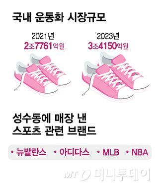 국내 운동화 시장규모 및 성수동 매장 낸 브랜드/그래픽=김현정 |