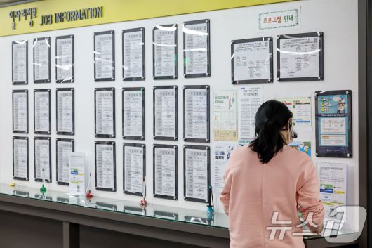 서울 마포구 서부고용복지플러스센터에서 여성 구직자가 일자리정보 게시판을 살펴보고 있다. 2024.10.14/뉴스1 ⓒ News1 민경석 기자 |