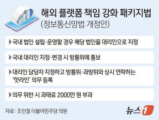 개정안을 대표 발의한 조인철 더불어민주당 의원은 "해외 플랫폼을 통해 불법 정보가 무분별하게 퍼지는 상황에서 형식적인 대리인 제도는 국민을 지킬 수 없다"며 "플랫폼의 실질적인 책임을 확보하기 위한 최소한의 조치를 개정안에 담았다"고 설명했다.