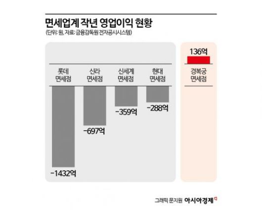 대기업 면세점들이 고환율에 따른 내국인 이용객 감소와 주요 시장인 중국의 경기 침체, 임차료 부담, 지난해 12월 대법원 판결에 따른 통상임금 기준 변경으로 발생한 추정 부담금 등이 더해지며 수백억원에서 최대 1000억원대 영업손실을 기록한 것과 대비된다. 지난해 면세점 4개 사의 영업손실액은 롯데면세점 1432억원, 신라면세점 697억원, 신세계면세점 359억원, 현대면세점 288억원 등 총 2800억원에 달했다.