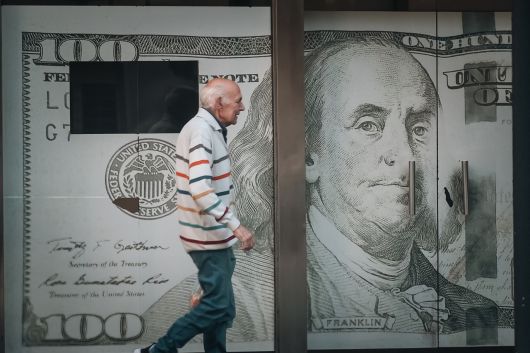 1일(현지시간) 아르헨티나 부에노스아이레스에서 한 시민이 달러 지폐가 크게 그려져 있는 환전소를 지나가고 있다. [EPA] |