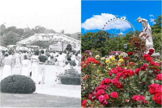 에버랜드는 지난 40년 장미축제의 예전과 근년의 모습을 비교하는 이미지를 공개해 눈길을 끌었다.