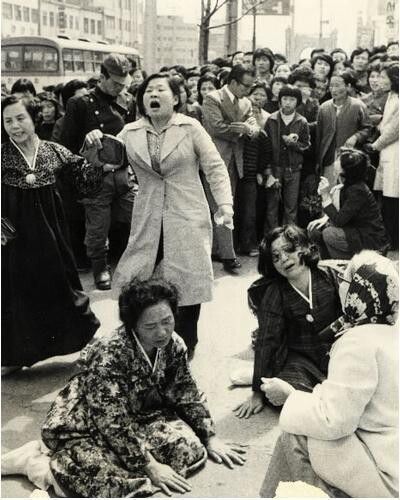 1975년 4월9일 오전, 체포된 지 1년 만에 처음으로 면회를 기대하며 서대문구치소를 찾았던 인혁당 재건위 사건 피해자 가족들이 그날 새벽과 아침에 이미 사형이 집행됐다는 소식에 오열하고 있다. 4·9평화통일재단 제공 |