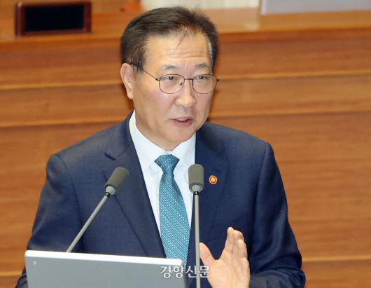 박성재 법무부장관이 지난 16일 국회 교육·사회·문화 분야 대정부질문에서 의원 질의에 답하고 있다. 박민규 선임기자 |