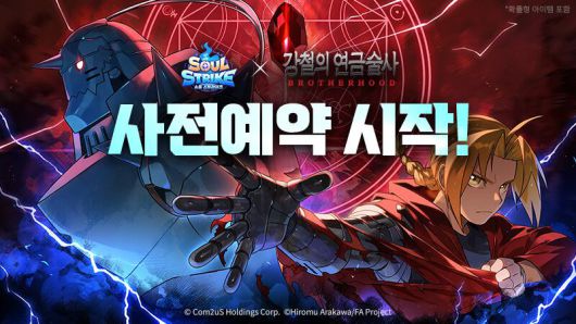 컴투스홀딩스가 모바일 게임 ‘소울 스트라이크(Soul Strike)’와 TV 애니메이션 ‘강철의 연금술사 브라더후드’의 컬래버레이션을 앞두고 사전 예약을 시작했다고 17일 밝혔다.
