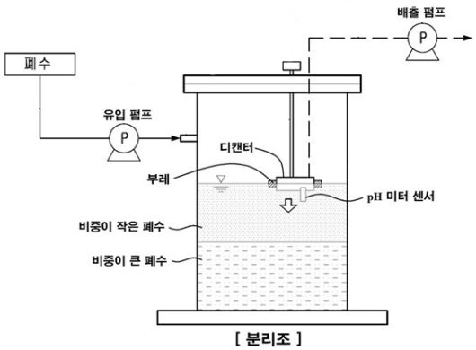처리 공정은 비중 차로 폐수가 층 분리된 후 먼저 비중이 상대적으로 낮은 1차 처리수를 디캔터(Decanter)로 분리하고, 하층의 pH를 측정해 각각 신속하게 산성 폐수(pH<7)와 염기성 폐수(pH>7)로 나눈다. 디캔터는 폐수를 저장조로 이송하며 수위 변화에 능동적으로 반응해 수위 조절이 가능하다.