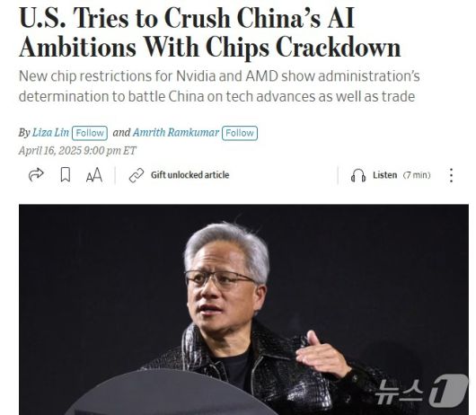 이를 방치할 경우, 중국의 AI 능력이 배가될 수 있다는 우려로 미국 정부는 관련 칩 수출을 더욱 옥죈 것이라고 WSJ은 전했다.