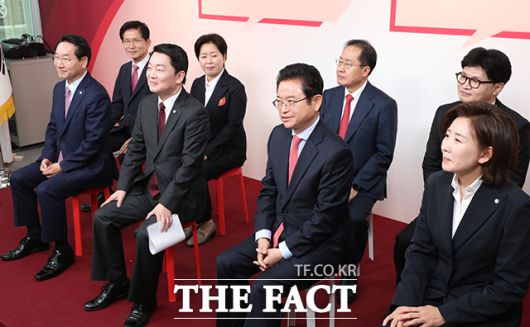 제21대 대선 출마를 선언한 유정복 인천시장과 김문수 전 고용노동부 장관, 양향자 전 의원, 홍준표 전 대구시장, 한동훈 전 국민의힘 대표, 나경원 의원, 이철우 경북도지사, 안철수 의원(왼쪽부터 시계방향)이 17일 오전 서울 여의도 국민의힘 중앙당사에서 열린 제21대 대통령선거 '1차 경선 토론회 미디어데이' 행사에 참석하고 있다. /배정한 기자 |