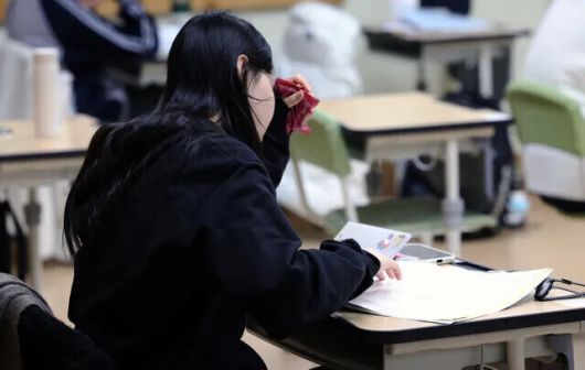 2024학년도 수능일인 지난해 11월16일 오전 광주의 한 고등학교 고사장에서 수험생들이 시험 시작 시간을 기다리며 공부하고 있다. 연합뉴스 |