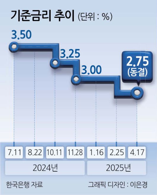 지난 2월에는 미국 관세 정책에 따른 경제 불확실성과 한은의 낮아진 경제성장률 전망치(1.9%→1.5%)로 금통위가 금리를 3.00%에서 2.75%로 내렸지만, 이번에는 환율 변동성에 더 큰 비중을 두고 동결 판단을 내린 것이다.