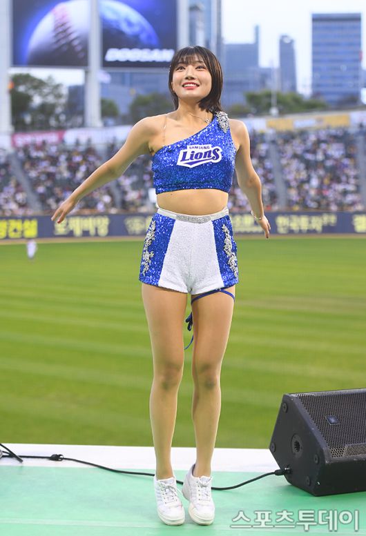 [스포츠투데이 팽현준 기자] 16일 서울 잠실야구장에서 열린 2025 KBO리그 삼성 라이온즈와 LG 트윈스의 경기, 삼성 박소영 치어리더가 응원하고 있다. 2025.04.16. [스포츠투데이 팽현준 기자 sports@stoo.com]