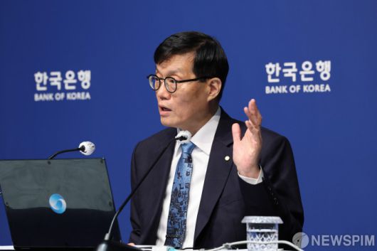 [서울=뉴스핌] 사진공동취재단 = 이창용 한국은행 총재가 17일 서울 중구 한국은행 본관에서 열린 금융통화위원회 본회의를 마친 후 통화정책방향 기자 간담회를 열고 취재진의 질문에 답하고 있다. 2025.04.17 photo@newspim.com