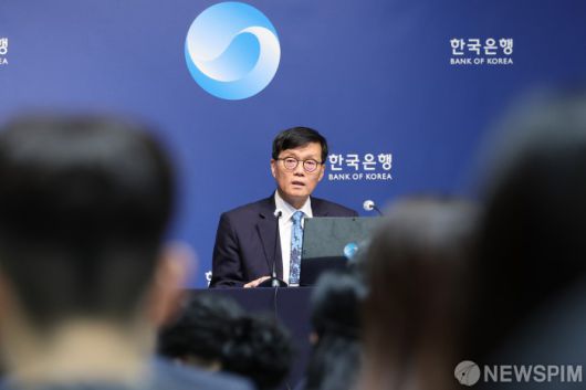 [서울=뉴스핌] 사진공동취재단 = 이창용 한국은행 총재가 17일 서울 중구 한국은행 본관에서 열린 금융통화위원회 본회의를 마친 후 통화정책방향 기자 간담회를 열고 취재진의 질문에 답하고 있다. 2025.04.17 photo@newspim.com