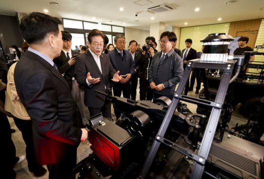 이재명 더불어민주당 대선 경선 후보가 17일 대전광역시 유성구 국방과학연구소(ADD)에서 인공지능(AI) 기반 무인체계 연구개발 현장을 둘러보고 있다. 국회사진기자단 |