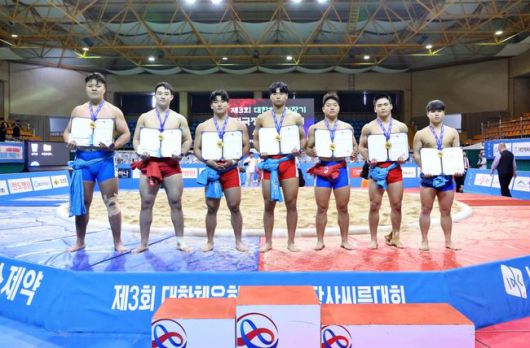 17일 전남 보성군 다향체육관에서 열린 ‘제3회 대한체육회장기전국장사씨름대회’에서 정상원(반여고), 고해성(여수공업고), 허강(남녕고), 김지섭(춘천기계공고), 서금광(마산용마고), 전명건(능인고), 곽승현(여수공고)이 고등부 개인전 각 체급 1위를 차지했다.