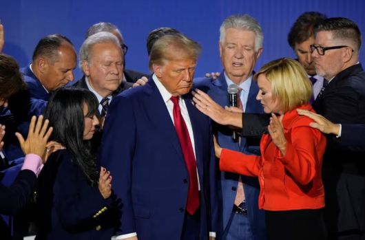 지난해 11월 도널드 트럼프 미국 대통령(왼쪽)과 대통령 직속 종교자유위원회 수장인 폴라 화이트(오른쪽)가 함께 기도하고 있다. [AP] |