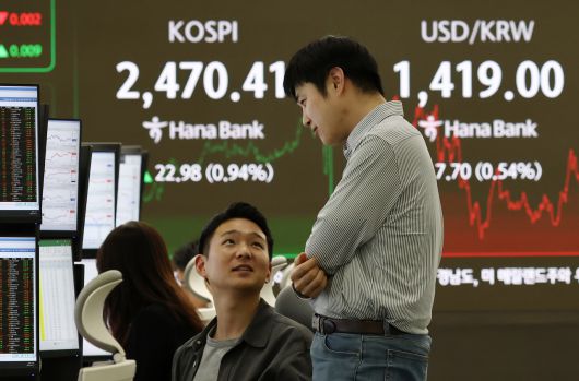 이날 한국거래소에 따르면 코스피 지수는 전장보다 22.98포인트(0.94%) 오른 2470.41에 장을 마쳤다. 지수는 전장 대비 4.27포인트(0.17%) 오른 2451.70으로 출발한 후 차츰 상승세가 강해졌다.