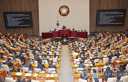 재표결 법안은 재적의원 과반수 출석, 출석의원 3분의 2 이상 찬성이 가결 요건이다.