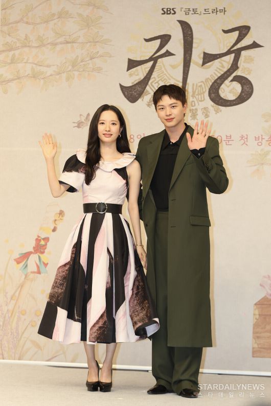[스타데일리뉴스=백진욱 기자] 배우 김지연-육성재가 17일 오후 서울시 양천구 목동 SBS에서 열린 SBS 새 금토드라마 '귀궁' 제작발표회에 참석했다.