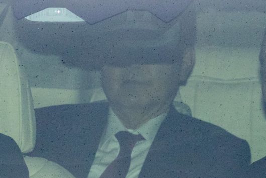 윤석열 전 대통령이 14일 오전 서울 서초구 서울중앙지방법원에서 열린 내란 우두머리 혐의 1차 공판에 차량을 타고 출석하고 있다. 2025.04.14. [서울=뉴시스] |