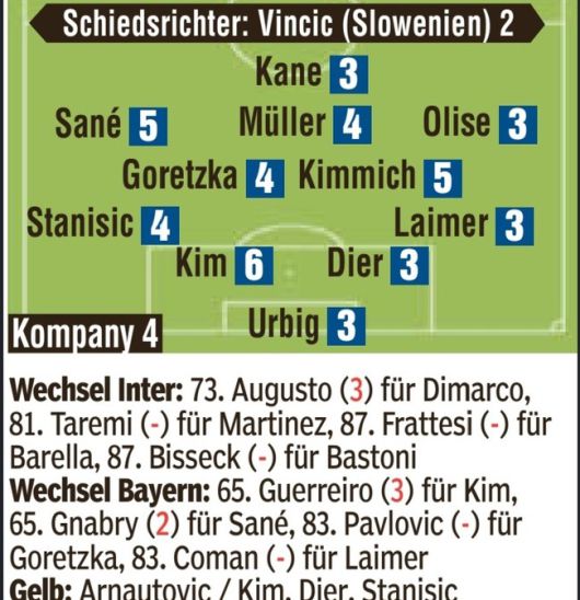 바이에른 뮌헨은 17일 오전 4시(한국시간) 이탈리아 밀라노에 위치한 스타디오 쥐세페 메아차에서 열린 2024-25시즌 유럽축구연맹(UEFA) 챔피언스리그(UCL) 8강 2차전에서 인터밀란과 2-2로 비겼다. 합산 스코어에서 3-4로 밀린 뮌헨은 탈락했다.