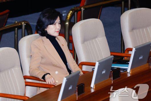 이진숙 방송통신위원장이 17일 오후 서울 여의도 국회에서 열린 제424회국회(임시회) 제5차 본회의에서 방송법 일부개정법률안 재의의 건 통과를 듣고 있다. 2025.4.17/뉴스1 ⓒ News1 안은나 기자 |