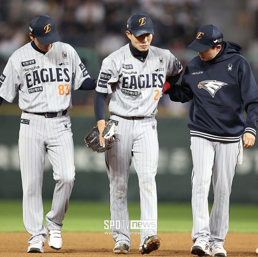 한화 관계자는 "심우준 선수는 수비 중 허리 쪽 담 증세가 발생해 선수보호 차원에서 교체했다"고 밝혔다. 일단 선수보호 차원으로 큰 부상이라고 판단하지는 않는 양상이다.