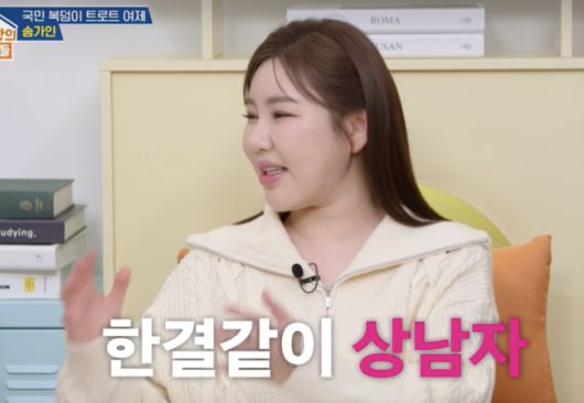 이날 패널들은 “송가인과 어색한 사람이 여기 있다”며 분위기를 몰았다. 알고보니 가수 김종국을 언급한 것. 송가인이 ‘미우새’ 프로그램을 통해 김종국을 이상형으로 꼽았기 때문이다.
