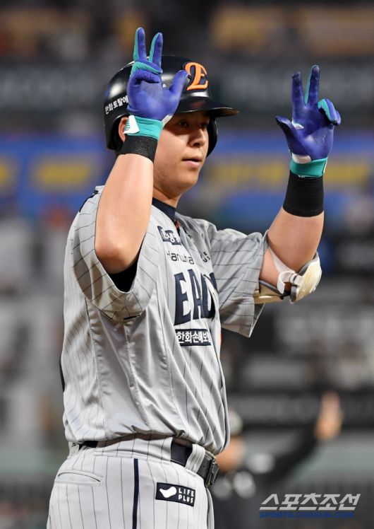 7회초 한화가 달아났다. 김건우가 선두타자 최재훈을 몸에 맞는 볼로 내보냈다. 뒤이어 이도윤의 희생번트 성공. 1사 2루에서 최인호가 노경은을 상대로 우익수 방면 2루타를 터뜨리며 2루주자 이원석을 홈까지 불러들였다.