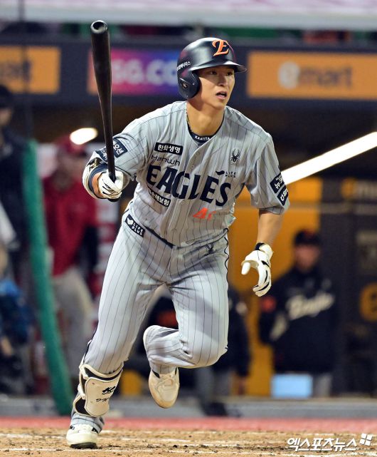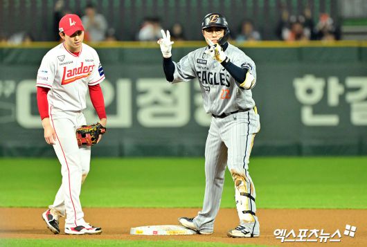 반면 한화는 7회초 한 점을 더 내고 SSG를 따돌렸다. SSG 마운드에는 김민 다음으로 올라온 김건우. 선두 최재훈이 몸에 맞는 공으로 출루했고, 대주자로 들어선 이원석이 이도윤의 희생번트 때 2루를 밟았다. 그리고 최인호의 우전 적시 2루타에 이원석이 홈인, 점수는 4-2가 됐다.