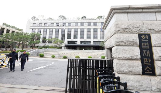 (헌법재판소가 지난 16일 한덕수 대통령 권한대행의 이완규, 함상훈 헌법재판관 후보자 지명의 효력을 정지했다./뉴스1헌재는 법무법인 도담 김정환 변호사가 낸 효력정지 가처분 신청을 인용하며 이같이 결정했다. 사진은 17일 헌법재판소 모습. 2025.4.17/뉴스1 |