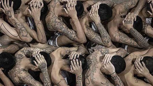 엘살바도르 대형 수용시설에서 대기 중인 수감자들. 엘살바도르 대통령실 제공. |