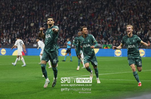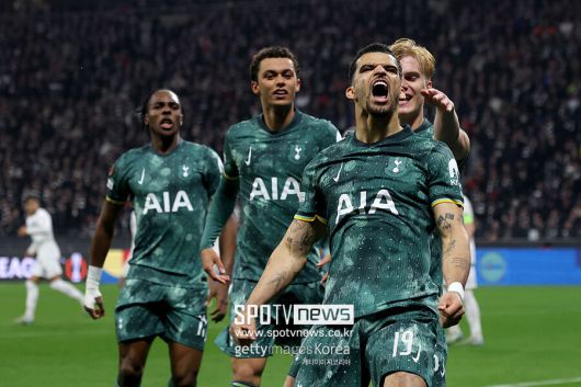 토트넘은 18일(한국시간) 독일 도이체 방크 파르크에서 열린 2024-25시즌 유럽축구연맹(UEFA) 유로파리그 8강 2차전 원정 경기에서 1-0으로 이겼다. 전반 막바지 얻어낸 페널티킥을 도미닉 솔란키가 성공하면서 적지에서 승리를 따낸 토트넘은 1, 2차전 합계 2-1로 이겨 4강 진출 티켓을 확보했다.