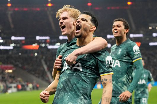 주장 손흥민(33)이 부상으로 결장한 토트넘(잉글랜드)이 UEFA(유럽축구연맹) 유로파리그(UEL) 4강 진출에 성공했다. 토트넘은 18일 프랑크푸르트(독일)와 벌인 UEL 8강 2차전 원정 경기에서 1대0으로 승리했다. 1차전에서 1대1로 비겼던 토트넘은 합계 2대1로 앞서 준결승행 티켓을 얻었다.