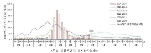 이번 절기 유행 기준인 1천 명당 8.6명의 2.5배 수준이다.