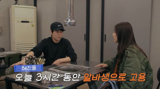 해당 고깃집은 한혜진의 남동생이 운영 중인 곳. 아르바이트생이 갑작스럽게 빠지게 되면서 일일 아르바이트를 하게 됐다고.