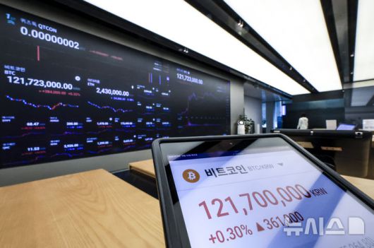 [서울=뉴시스] 정병혁 기자 = 10일 서울 강남구 업비트 고객센터 전광판에 비트코인 시세가 표시되고 있다. 미국이 우리나라를 포함해 일부 국가에 부과하기로 했던 상호관세를 90일 유예한다고 발표하면서 미국 증시와 함께 가상자산 가격이 전반적으로 상승세를 보이고 있다. 이날 오전 11시 기준 비트코인은 국내에서 1억2000만원대선에서 거래중이다. 2025.04.10. jhope@newsis.com |