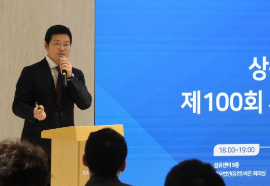 법무법인 바른 상속신탁연구회 소속 조웅규 변호사가 17일 열린 제100회 세미나에서 ‘초고령사회의 도래와 유언대용신탁의 활성화’ 주제 발표를 하고 있다. (사진=법무법인 바른 제공) |