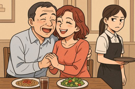 공공장소인 식당에서 중년 남녀가 진한 애정 행각을 벌였다는 사연이 전해졌다. 식당 점주는 "나잇값 좀 하자"고 간청했다.