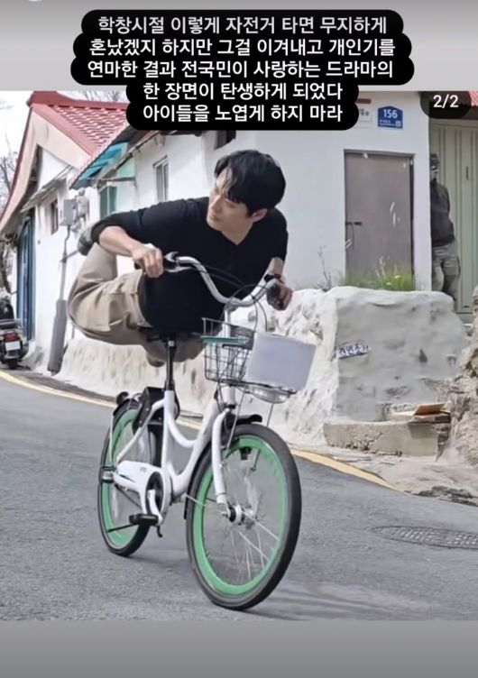 최동석은 사진과 함께 "학창시절 이렇게 자전거 타면 무지하게 혼났겠지 하지만 그걸 이겨내고 개인기를 연마한 결과 전국민이 사랑하는 드라마의 한 장면이 탄생하게 되었다. 아이들을 노엽게 하지 마라"란 글을 올렸다.