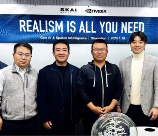 젠슨 황 엔비디아 CEO가 '피지컬 AI'를 핵심 키워드로 꼽은 가운데 스카이(SKAI)인텔리전스가 엔비디아의 산업용 AI 플랫폼 옴니버스(Omniverse) 기반 협업을 진행하고 있다. (왼쪽부터) 렌 지안빙 엔비디아 중국 리테일 사업개발 총괄 책임자, 모건 마오 스카이인텔리전스 공동대표 및 AI 총괄, 제노 잔 헤 엔비디아 옴니버스 아태지역 비즈니스 총괄, 이재철 스카이 인텔리전스 대표. /스카이인텔리전스 공식 링크드인 |