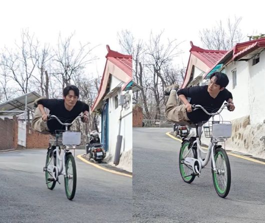 공개된 영상에는 최대훈이 엎드린 자세로 자전거 안장에 배를 올리고 질주하는 모습이 담겼다.
