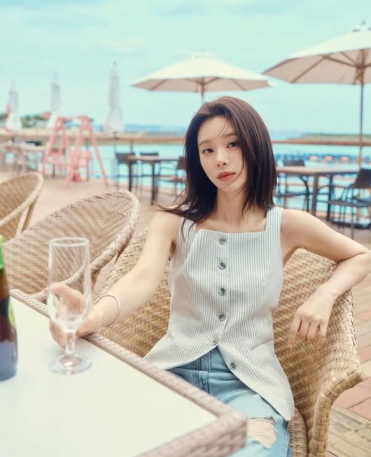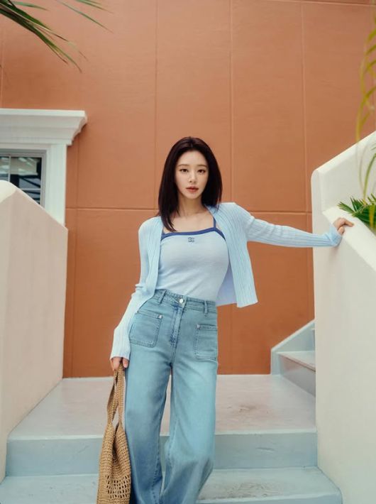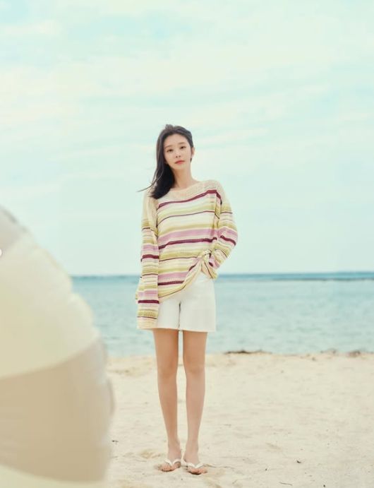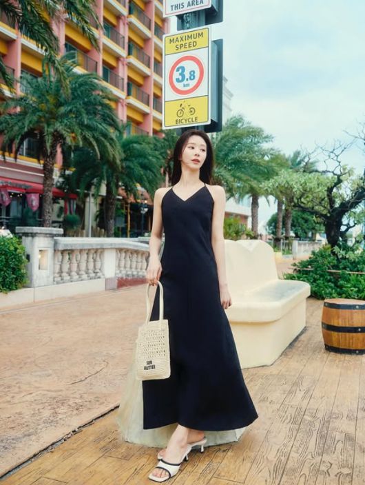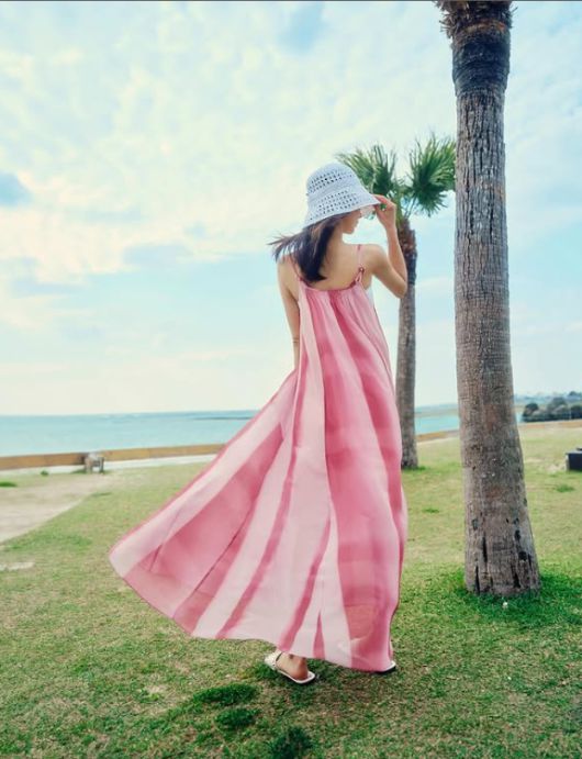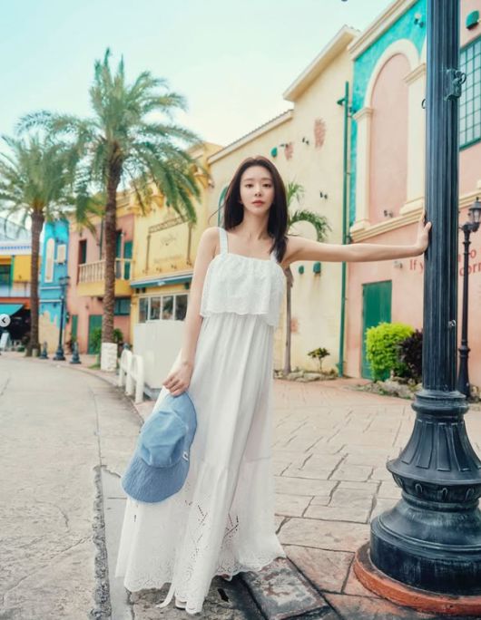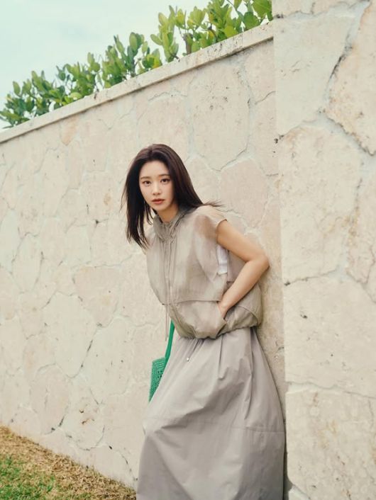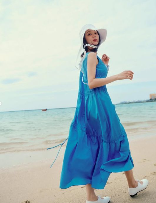 또, 베이지 계열의 롱스커트와 후드 베스트로 내추럴하면서도 우아한 무드를 자아냈다. 선명한 블루 컬러의 롱 드레스와 화이트 버킷햇을 매치해 해변에서 자유롭고 감각적인 스타일을 완성했다.
