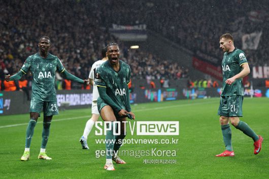 토트넘 홋스퍼는 18일(한국시간) 독일 프랑크푸르트의 도이체 방크 파르크에서 열린 2024-25시즌 유럽축구연맹 유로파리그(UEL) 8강 2차전에서 아인트라흐트 프랑크푸르트를 1-0으로 제압했다. 전반 43분에 터진 도미닉 솔란케의 페널티킥 선제골은 결승골이 됐다.