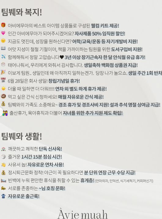 특히 눈에 띄는 점은 장기근속자에 대한 혜택이다. 3년 이상 근속 시 한 달 간의 안식월 유급 휴가를 제공하며 출산휴가와 육아휴직은 물론 자녀를 위한 추가 지원 제도까지 마련되어 있어 직원들의 워라밸을 적극 고려하고 있음을 보여준다.